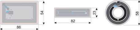 Dimensions (mm): 86×54, 82×23, 45×28, 38×38, D30, D58